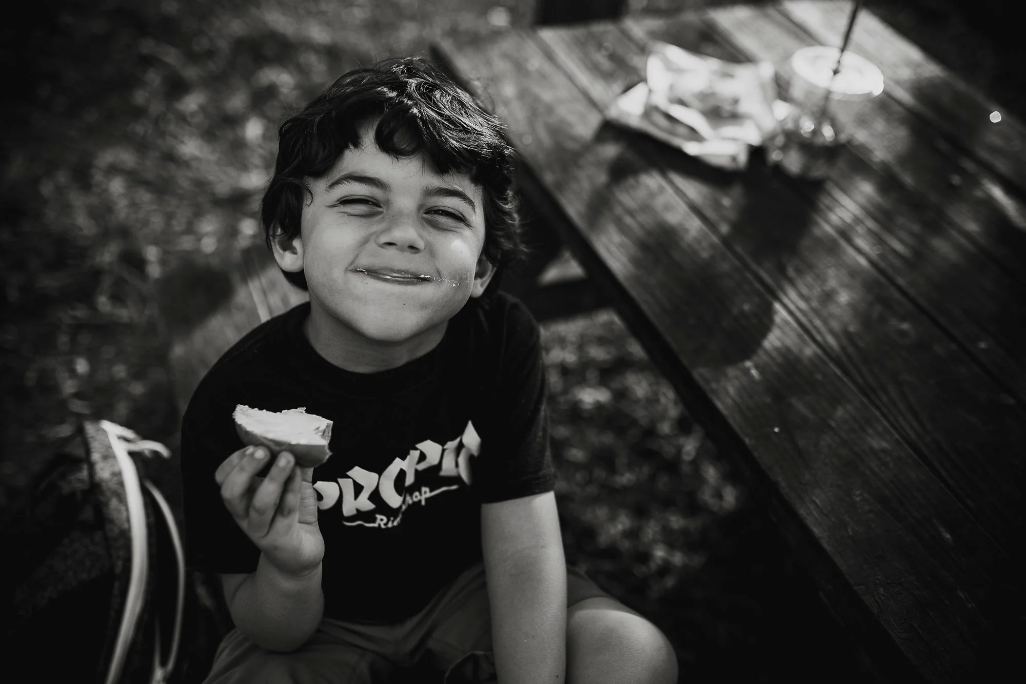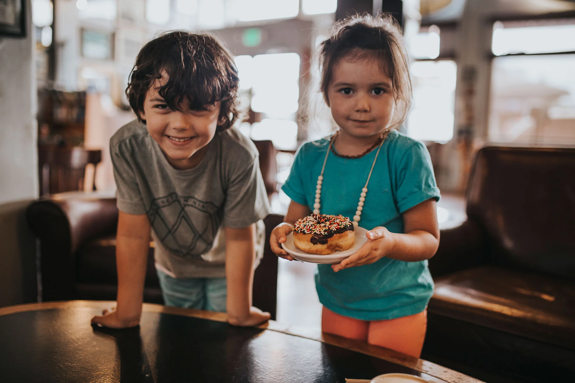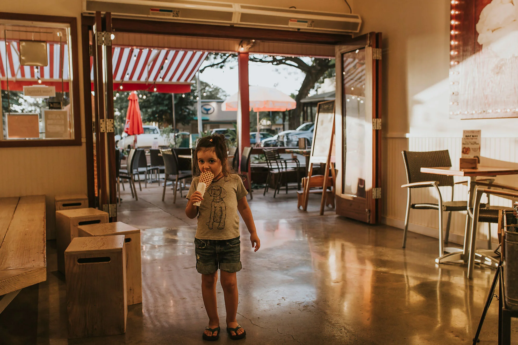 Day 86 - Stopped at the Surfer's Coffee Bar for some aΓ§aΓ after Maili's music class and the kids spotted this donut and asked to share it.