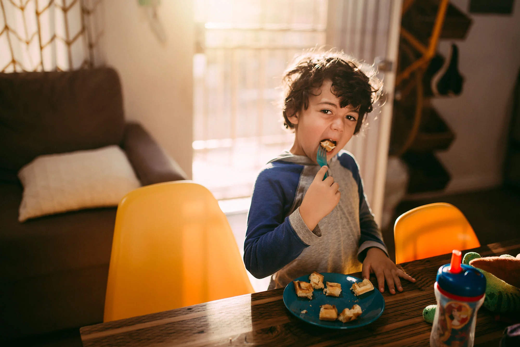 Day 37 - Bedhead and waffles before school.