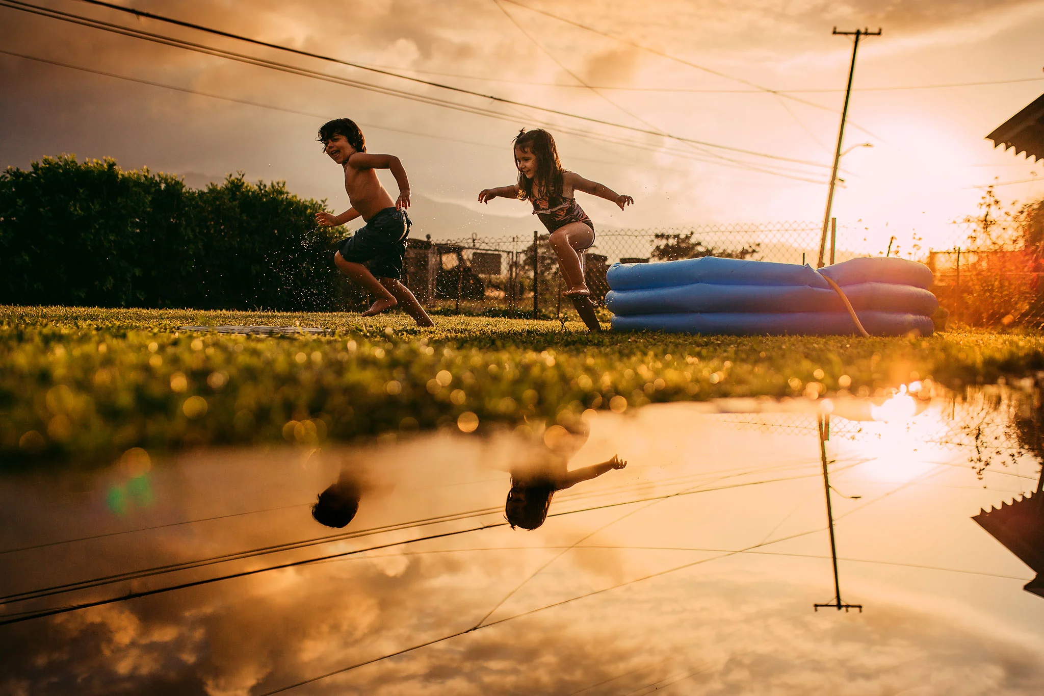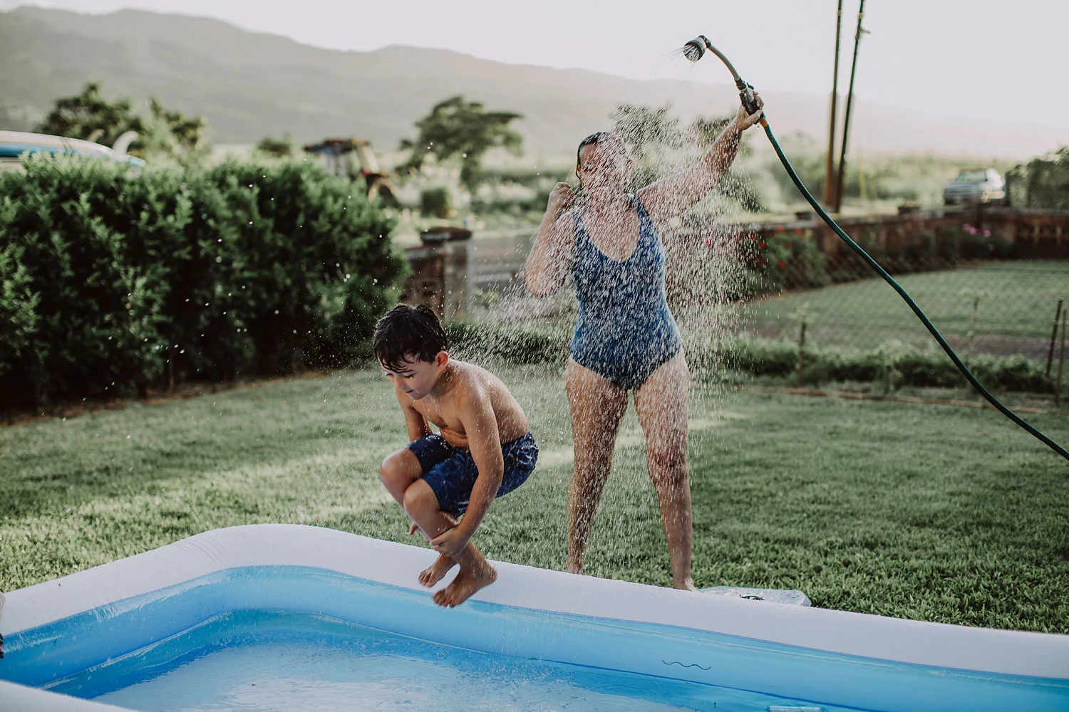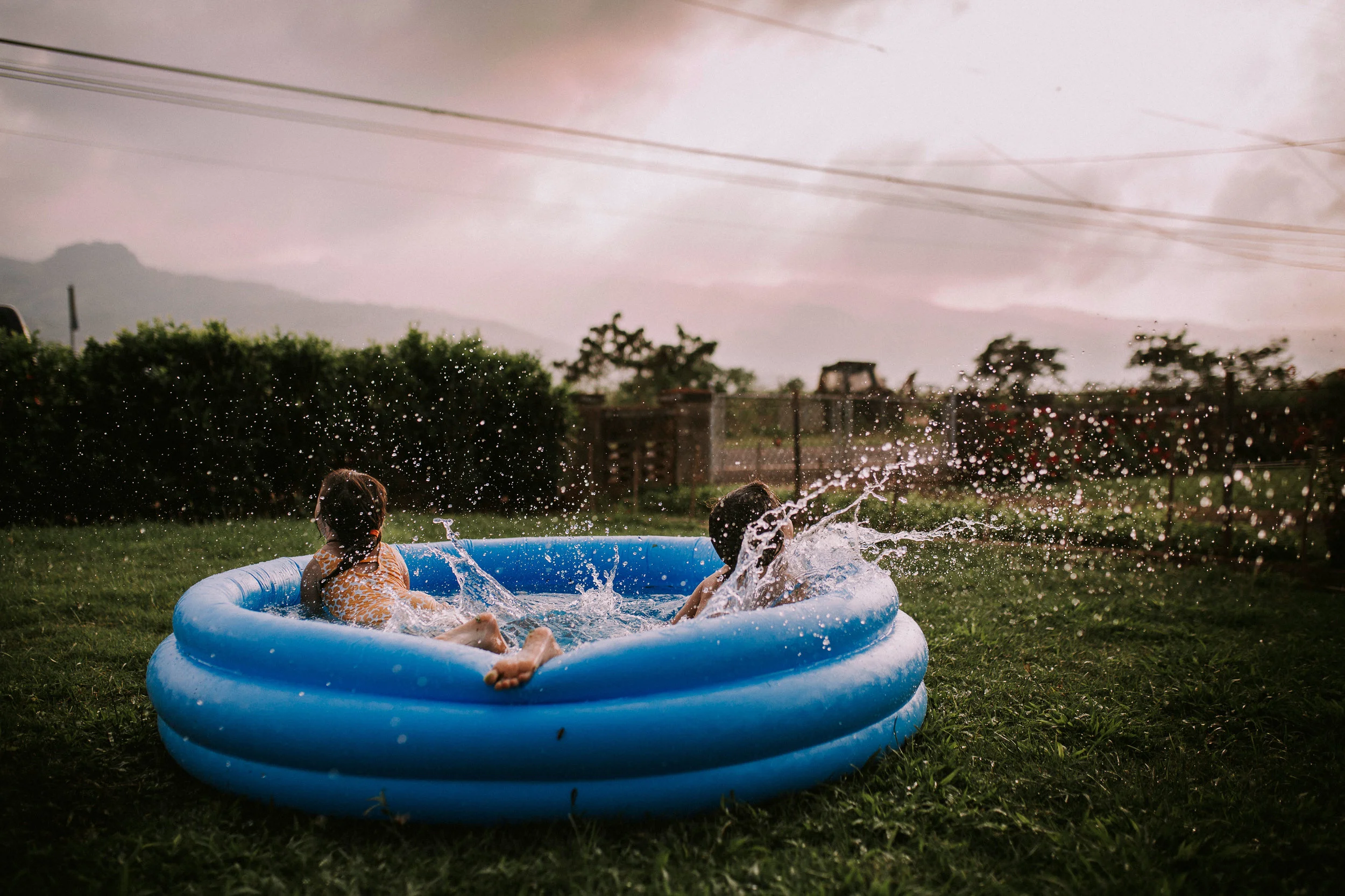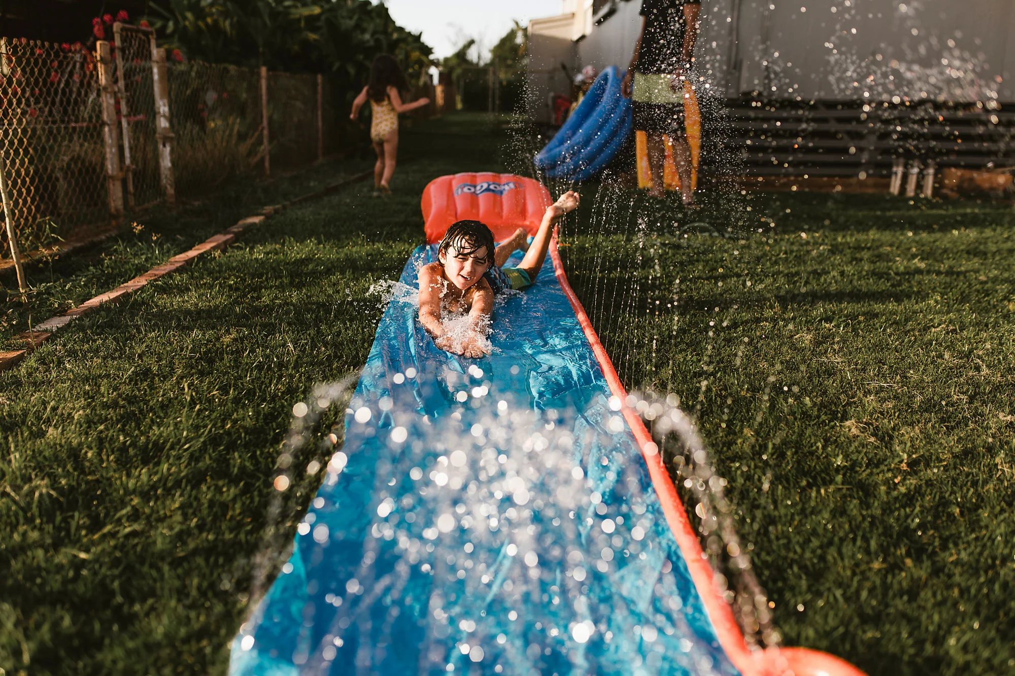 Day 89 - After a hot day we cooled down playing in their current favorite spot: the yard.