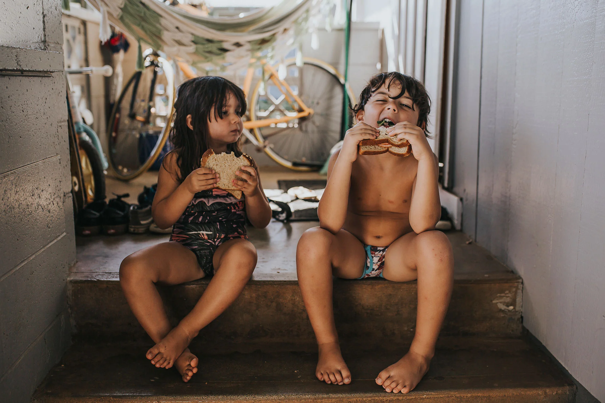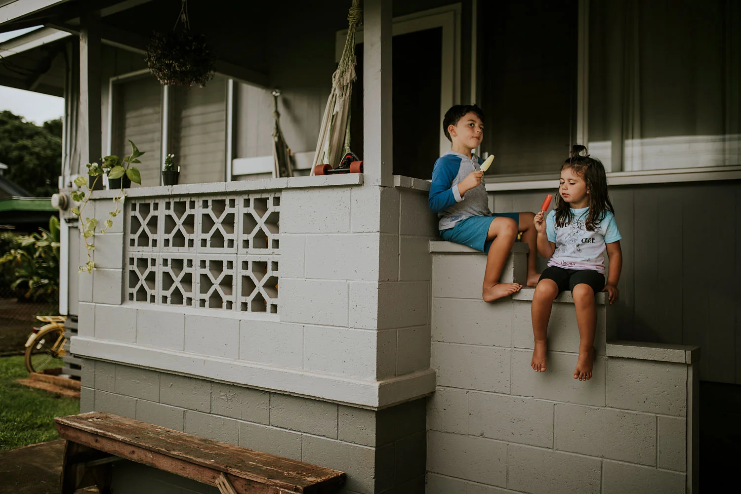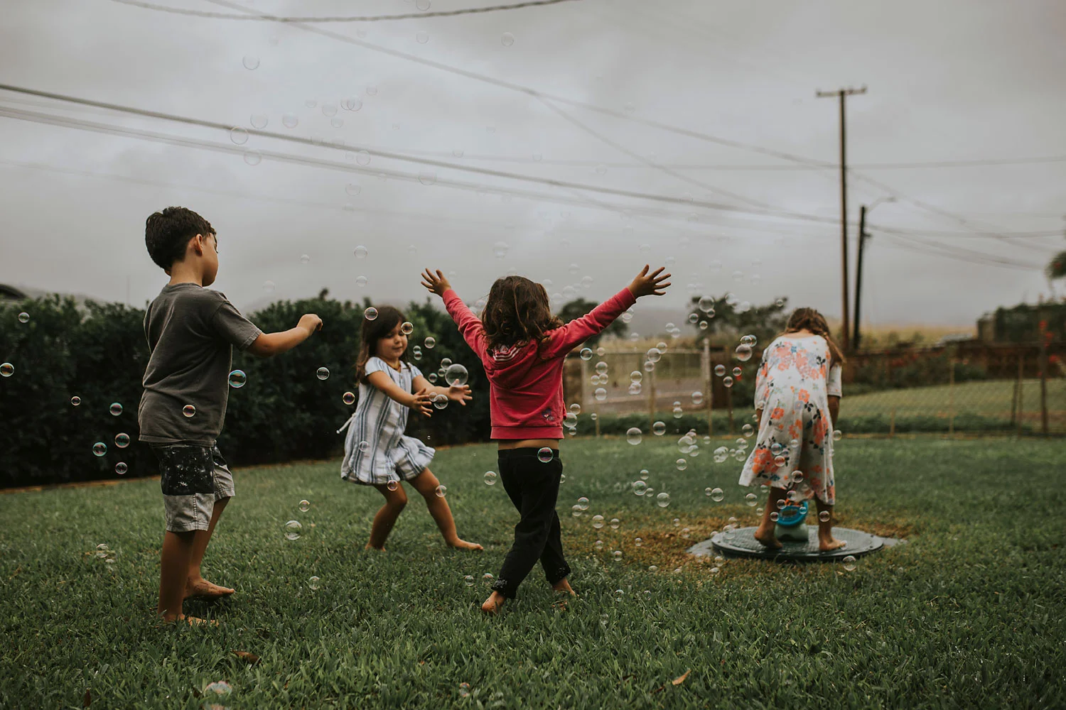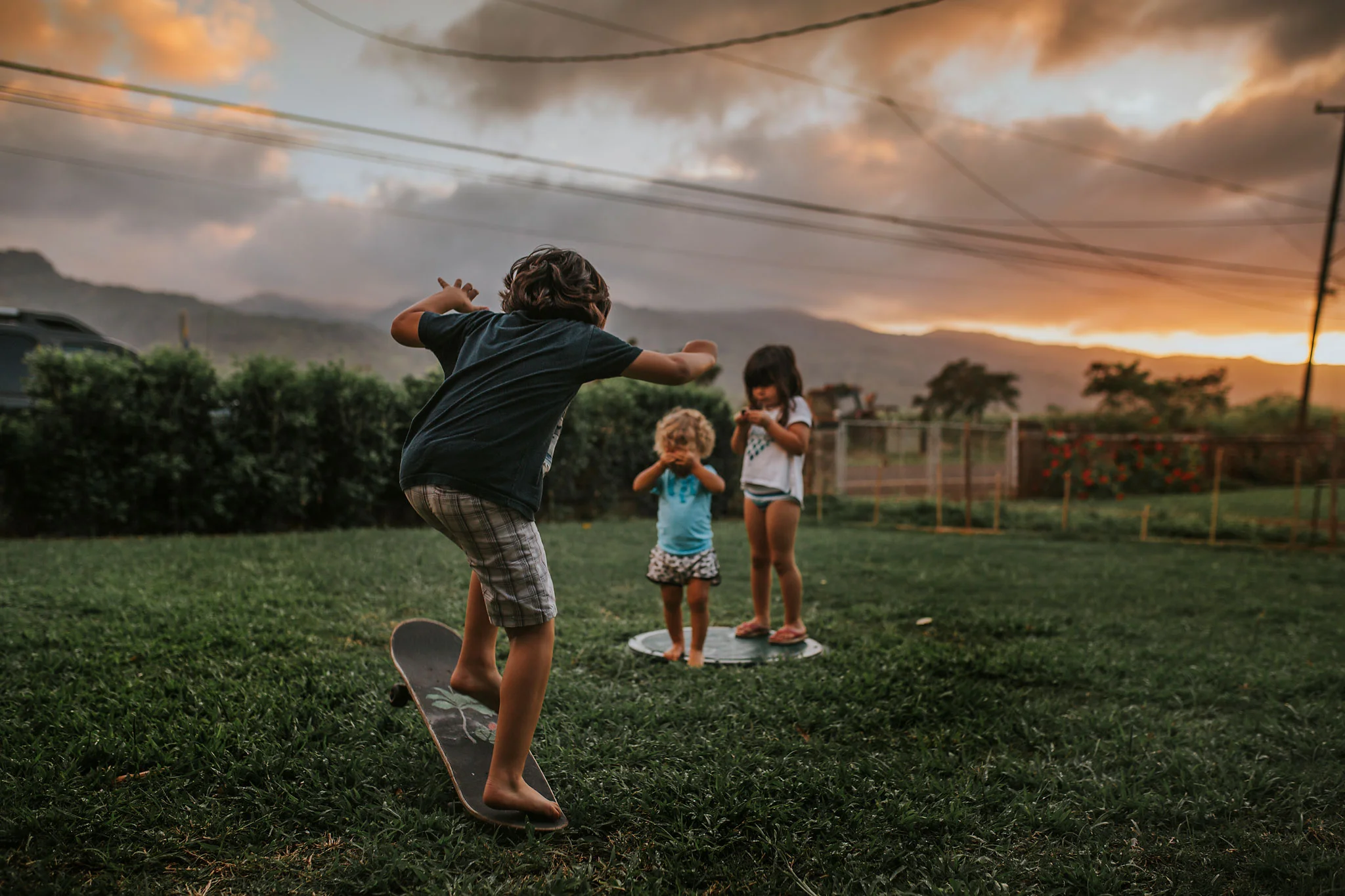 Day 89 - After a hot day we cooled down playing in their current favorite spot: the yard.