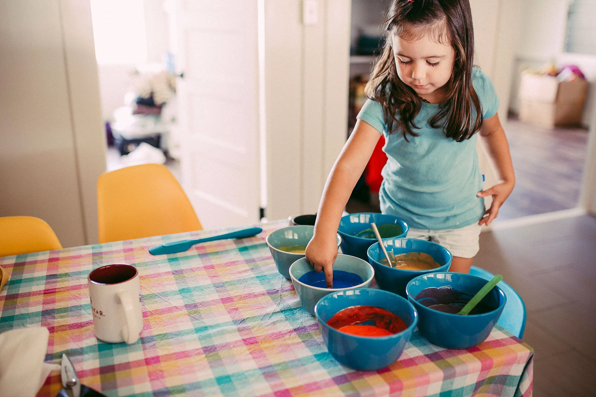 Day 90 - We baked a rainbow cake today, just us girls. After having a large piece and being told "no more", Maili grabbed a chair, climbed on the counter and ate a quarter or the cake leaving rainbow crumbs all over the kitchen while I was working. She got a long time out and a tummy ache to go with her sneakiness...