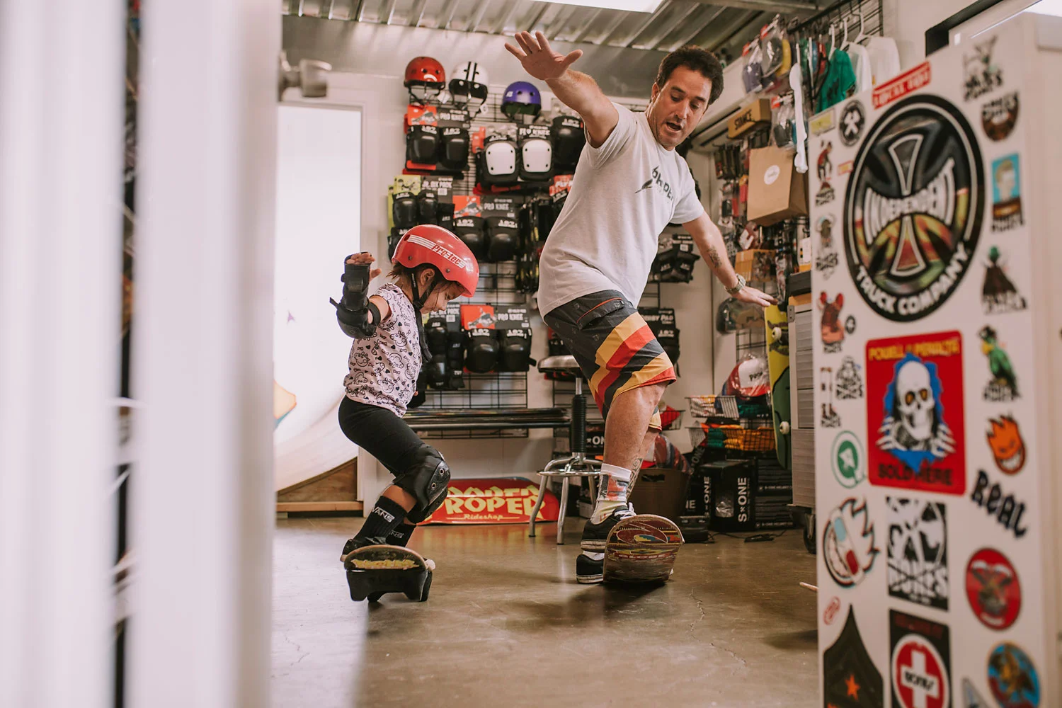 Day 99 - Maili had her first "mini" skate lesson with Coach Matt at Proper Ride Shop. She bust out some tail stalls on the soft trucks.