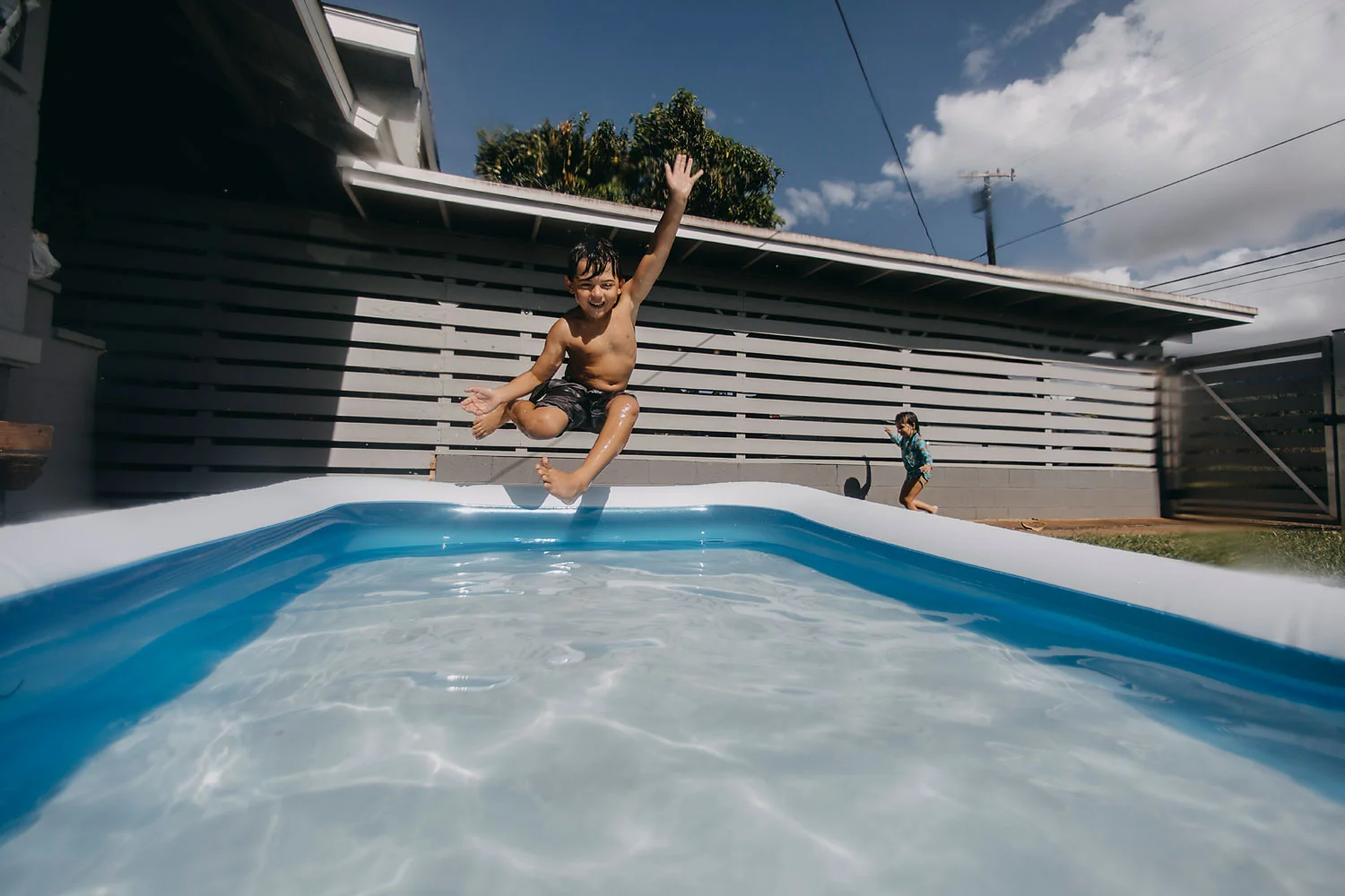 Day 283 - Swinging into the pool before we have to throw it away. Itβs getting gross.