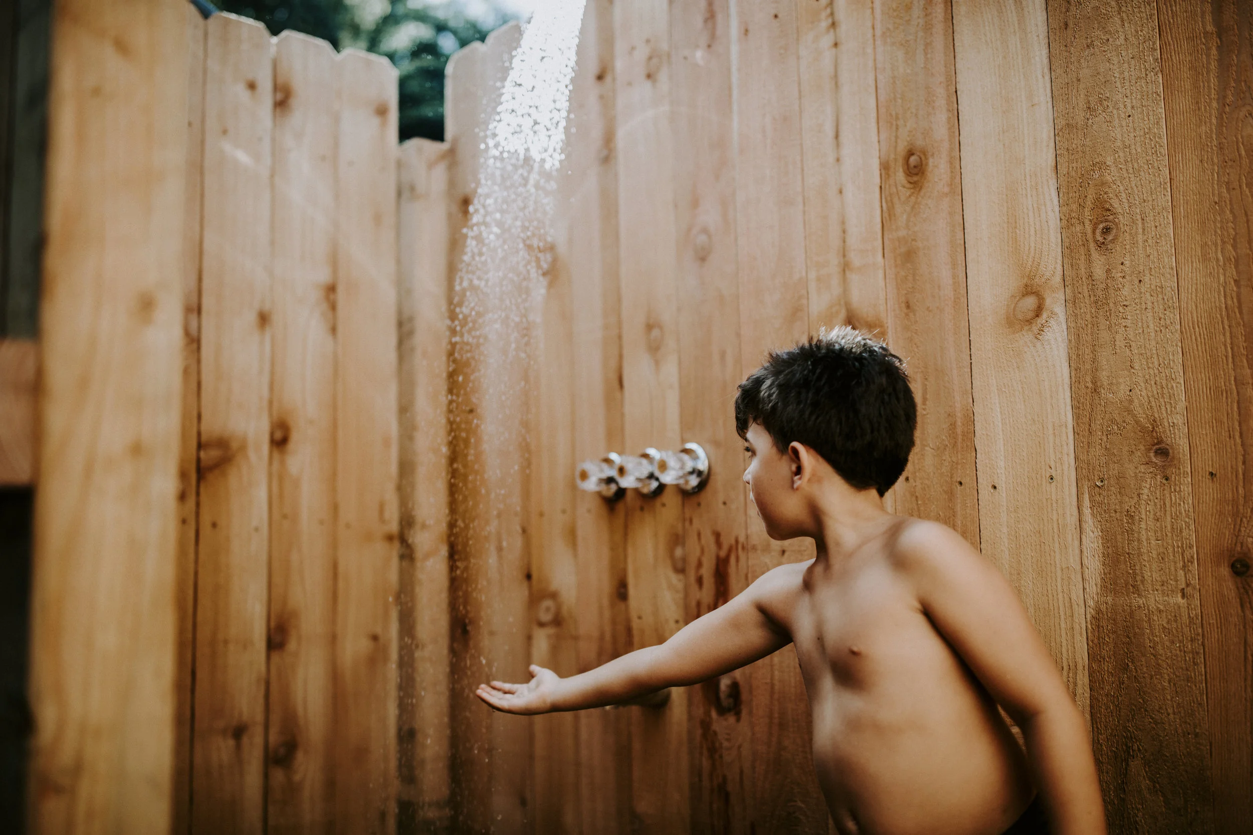 Day 203 - Trying out the outdoor shower that dad and uncle Sergio built.