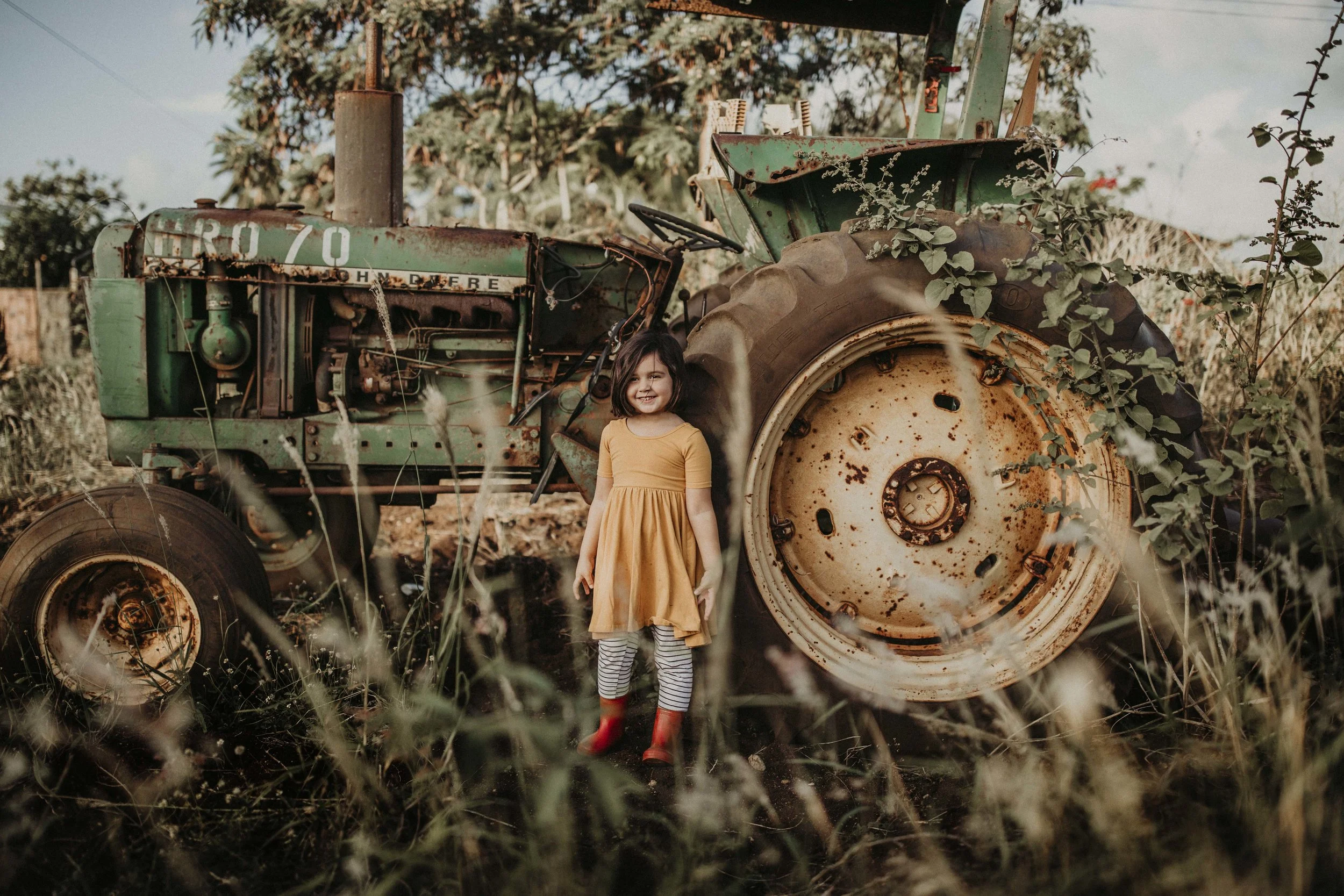 Day 310 - Took Maili out front by the old tractors to film behind the scenes for my first Clickin Moms breakout.