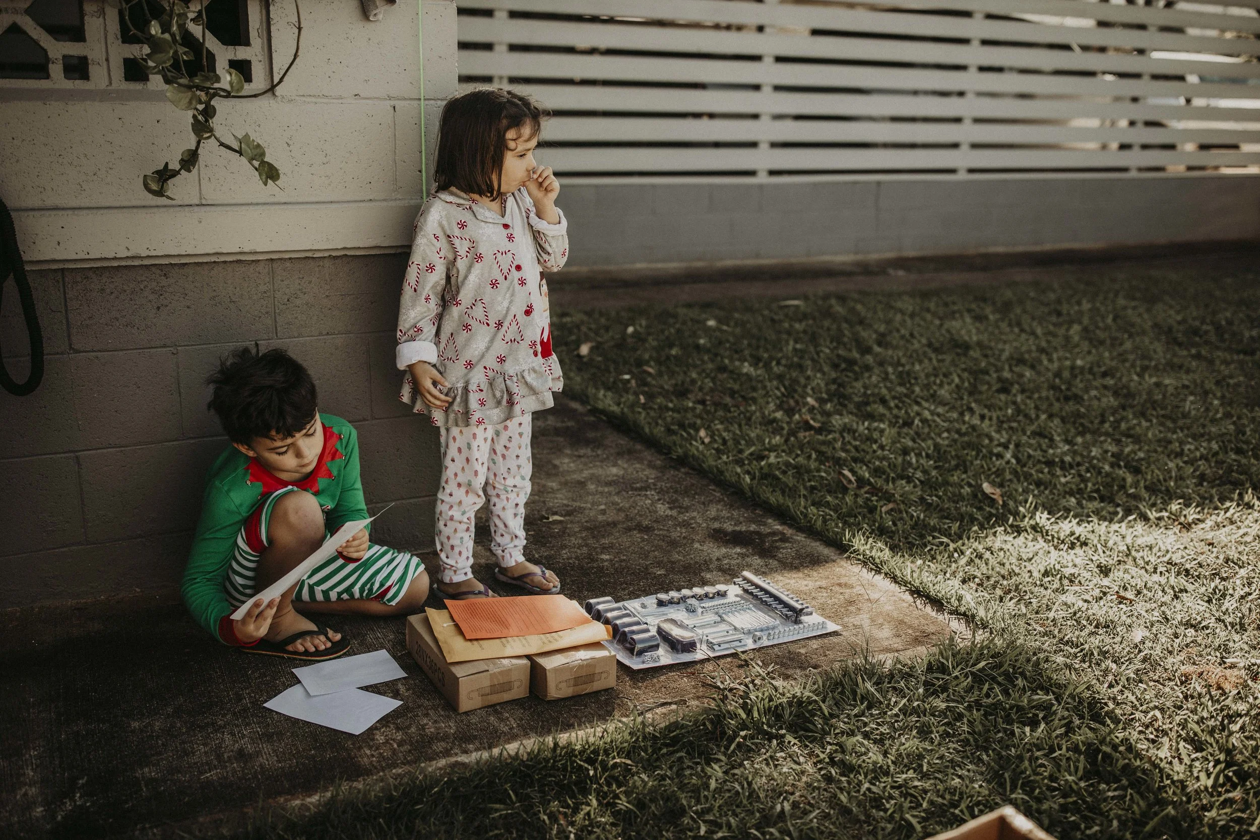 Day 360 - They got a trampoline for Christmas! Waiting anxiously while Dad and tio Lex put it together.