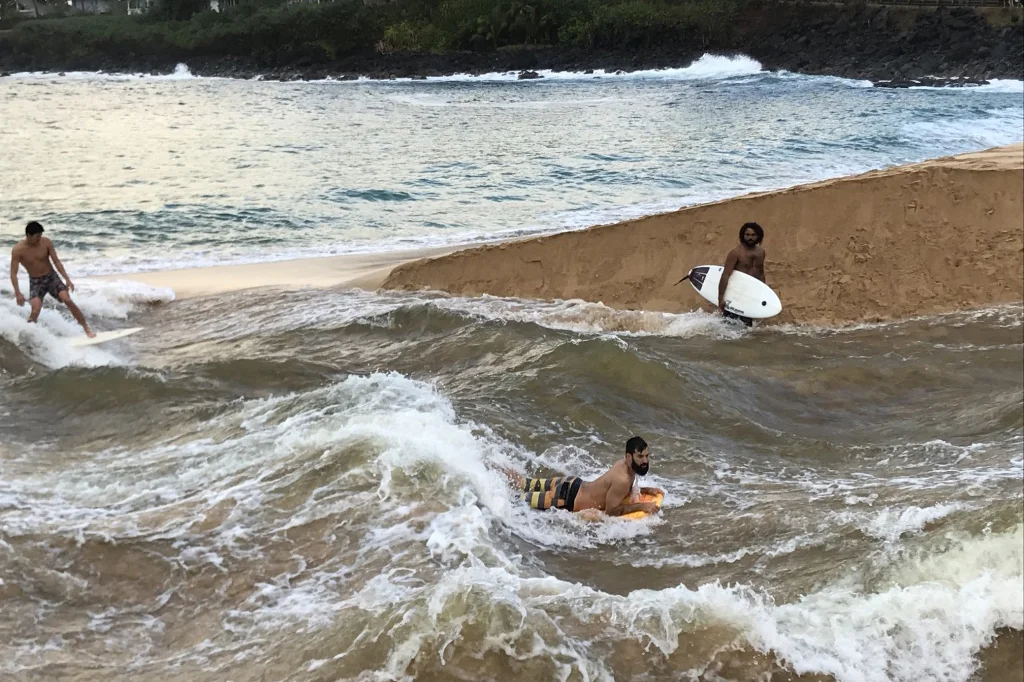 Day 362 - Dad and tio Lex got the rare chance to surf the Waimea river wave with tio Sergio and Aaron Eveland.